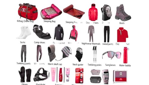 We believe equipment does matter to make your trip easy and comfortable. Caring excessive quantity of equipment doesn't make your adventure more interesting but the drawback. So, we request you to carry only selected and needed ones and save your extra expenses for other needs in the trek though we have our potential porters. Warm Clothes, Down Jacket, Trousers, T-shirt, Hiking boots, Sun glass, Sun cream, Knife, Walking Steak, day backpack, Head Light, Sleeping Bag, etc. These are the equipment that you must carry during the trek.